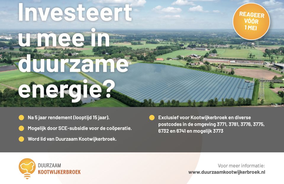 Investeer mee in duurzame energie met Energiecoöperatie Duurzaam Kootwijkerbroek en ontvang een zeer aantrekkelijk rendement!